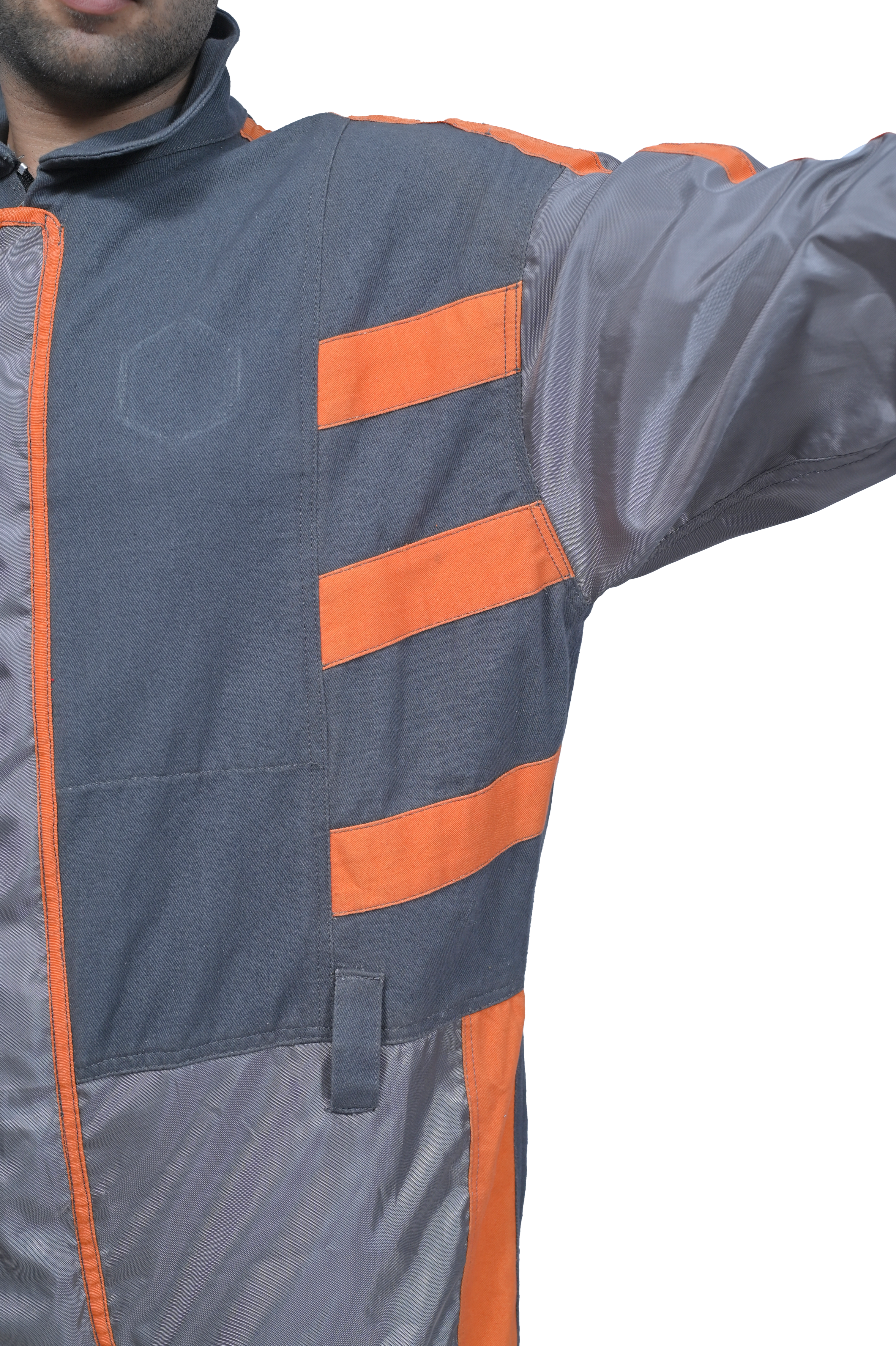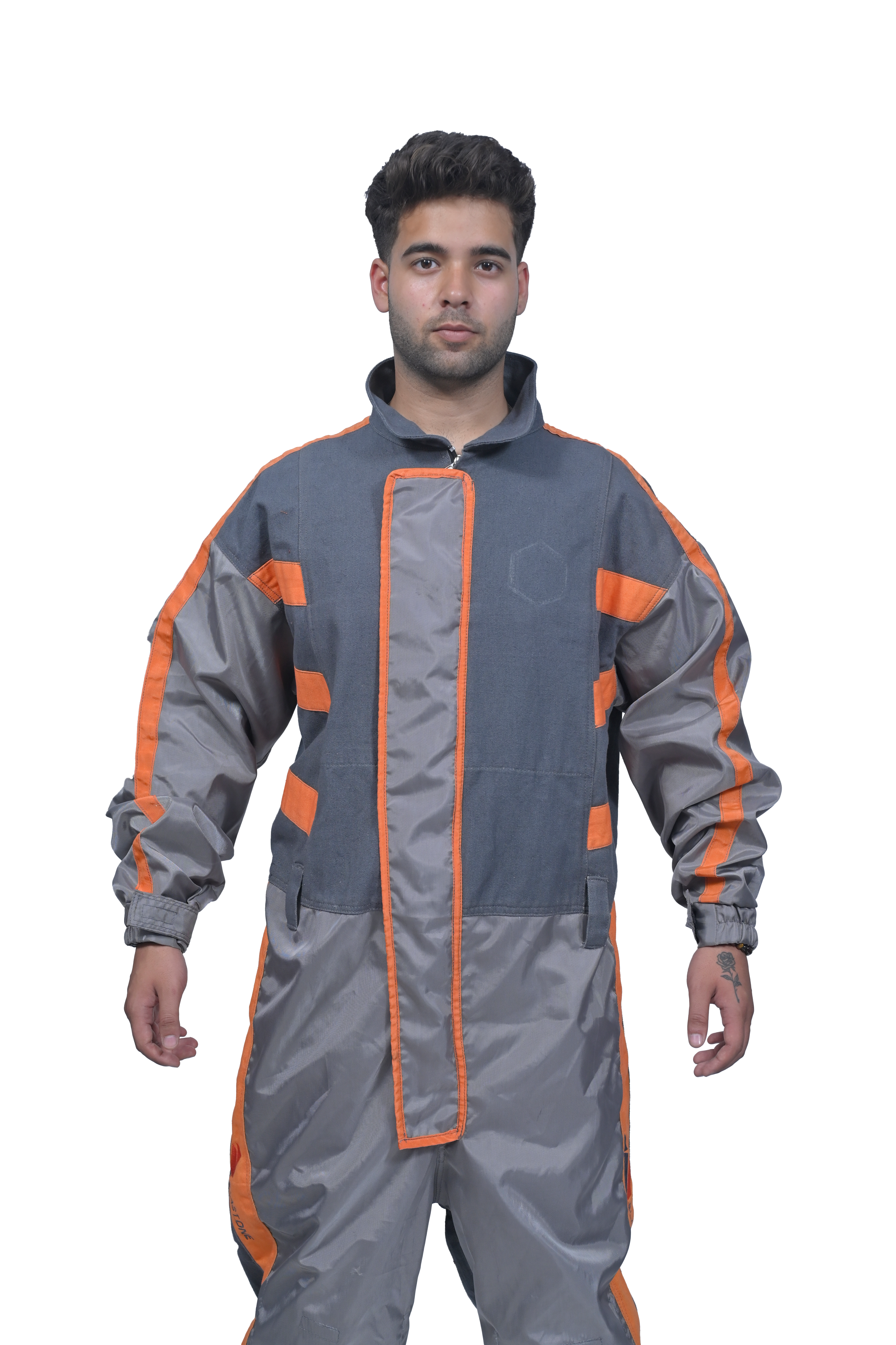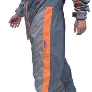 The overall is the ultimate protective blasting suit designed for blasters. This tough and durable suit is made with a nylon/cotton construction that offers excellent body protection and breathability during abrasive blasting. The Boot and hand loops keep the suit securely in place for added operator safety and convenience. Large interior pockets provide easy access to daily supplies. Strong stitching throughout ensures durability and longevity. Elasticated cuffs and ankles, heel loops, and double kneepad pockets provide added comfort and convenience. Company logo can be added.