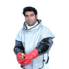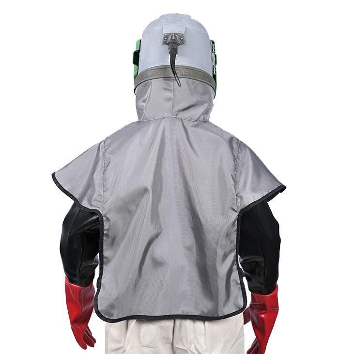 The cape attaches directly to the helmet using strong press studs which allow for easy removal by the operator but will not come off accidentally. The cape also forms a tight seal to prevent dust from entering the respirator.