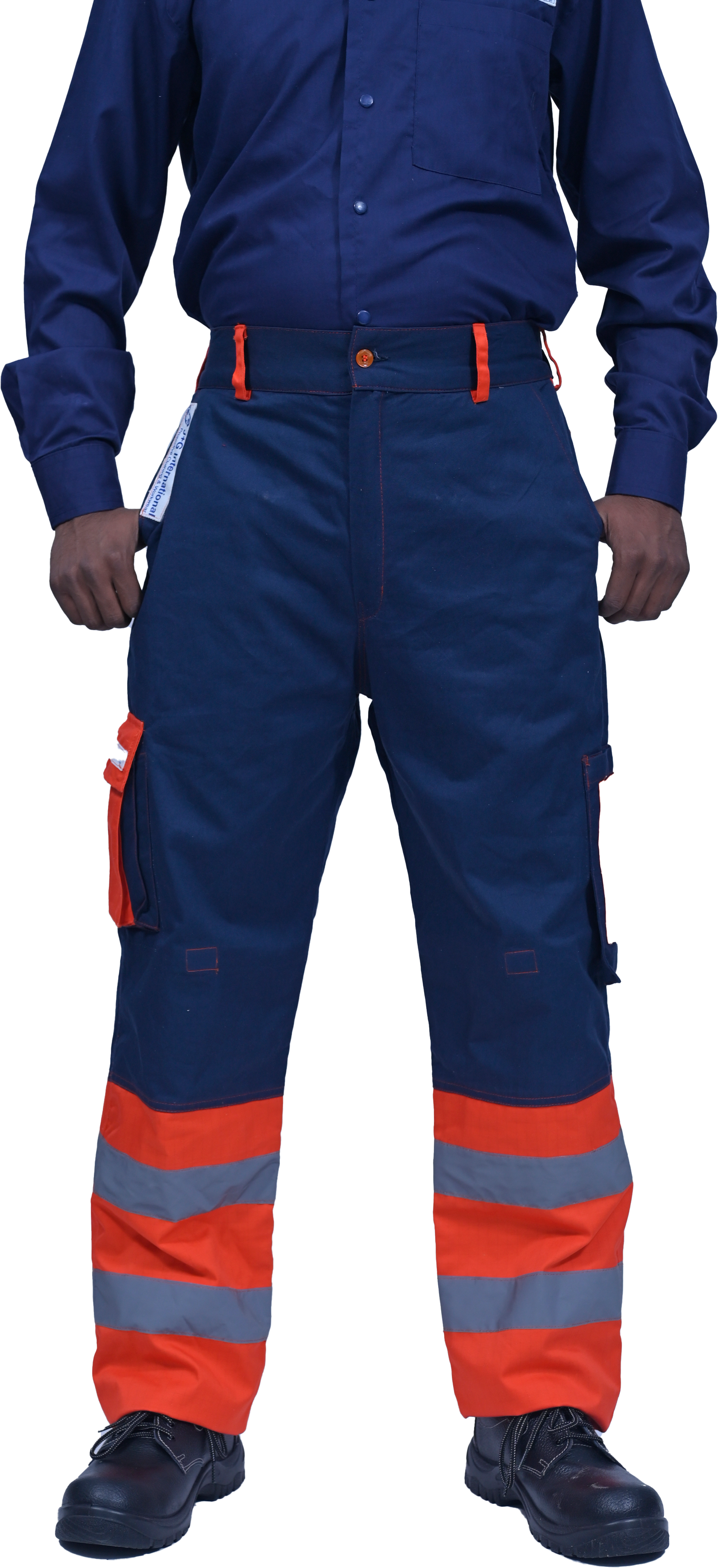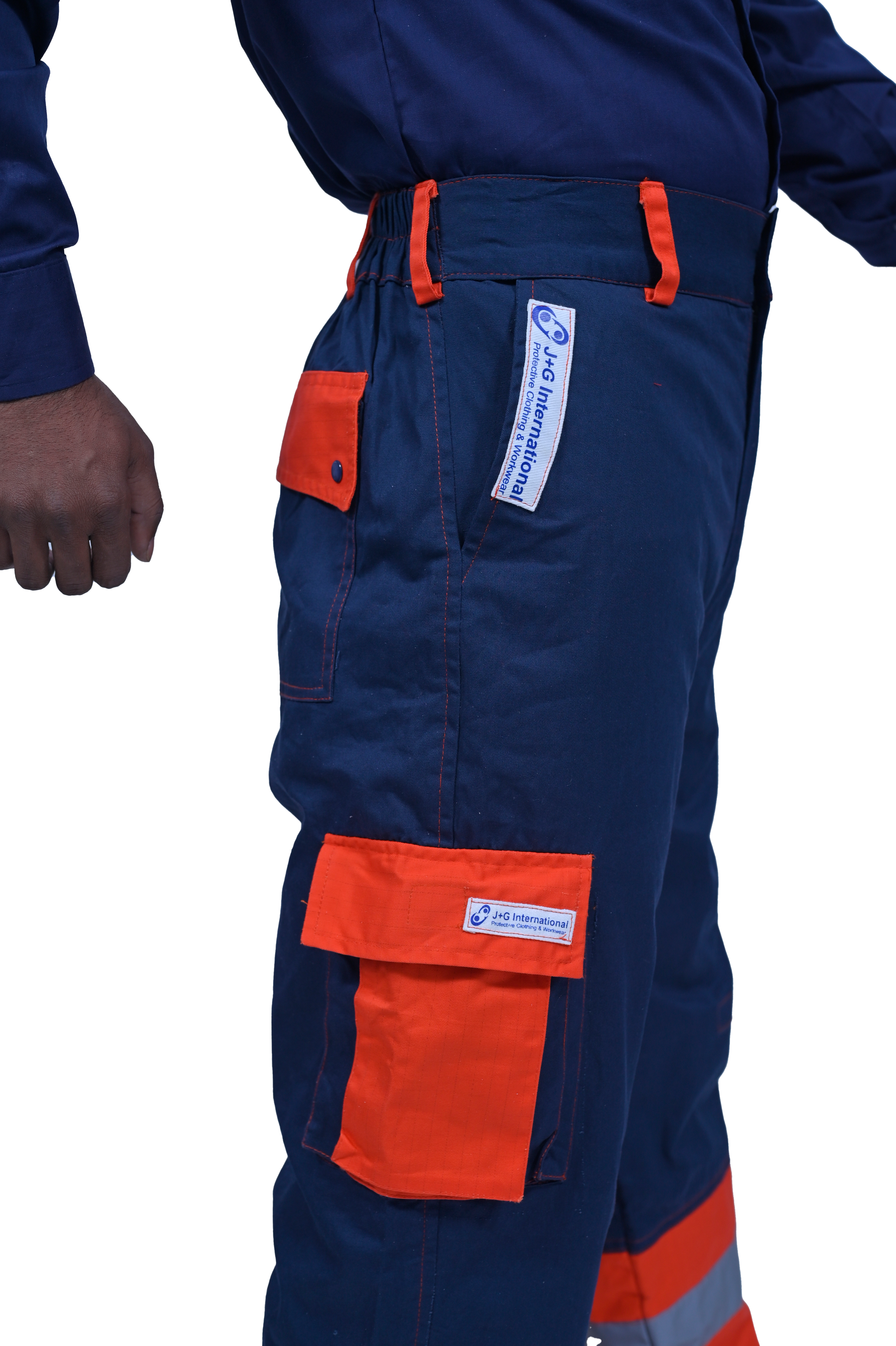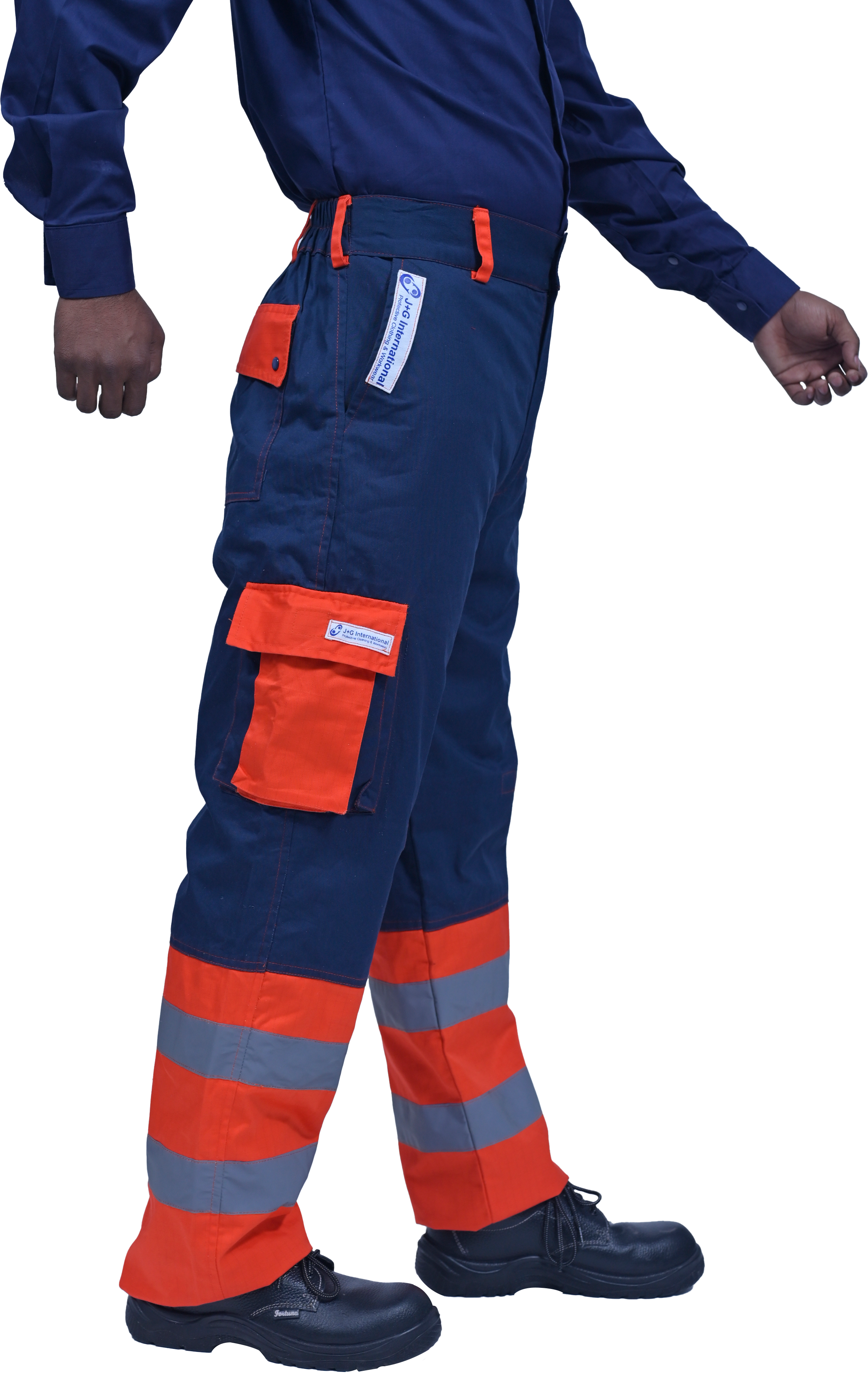 Wide hem with dual stitching work trousers that ensure maximum comfort and protection can add Segmented reflective strip to enhance visibility. Add-on side and knee-pad pocket. Can be customized as per requirement. Available in single or dual color, company Logo can be printed.