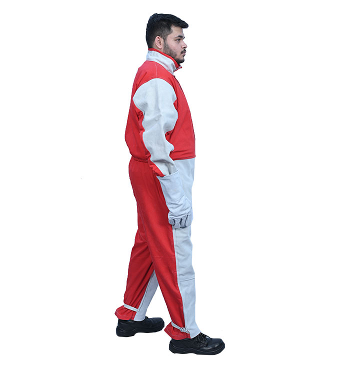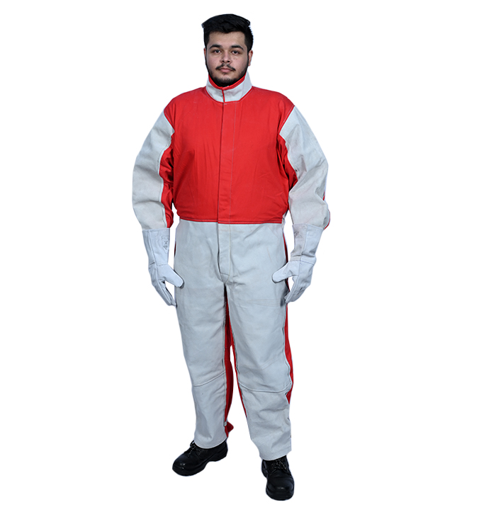 This is the most common type of Blasting Overall. It is manufactured with Split leather in front, from waist downward and on the front side of the sleeves.