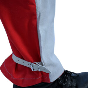 Heavy Duty Drill is used on the Chest portion, and on the back side for easy and comfortable movement. Two large leather patch pockets are provided on the back side, if required. The collar is of softer, split leather. We provide double closing at front. It is with snap buttons underneath and Hook & Loop or Snap Button at the top. For tightening at wrists and legs, we use Nylon strap with Hook & Loop &Buckle or Leather straps with Buckles as required by the Buyers.