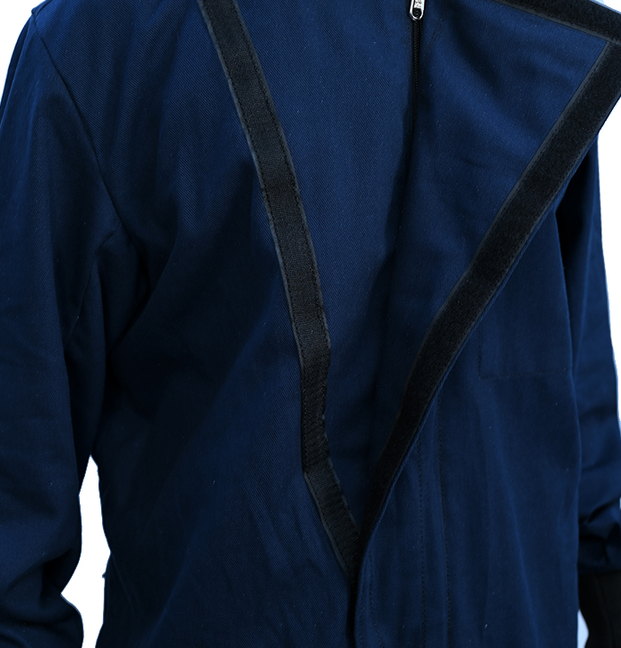 The front closing is with a flap with Hook & Loop. The cuff & knees we use heavy duty stretchable Nylon material for perfect closing at the ends.