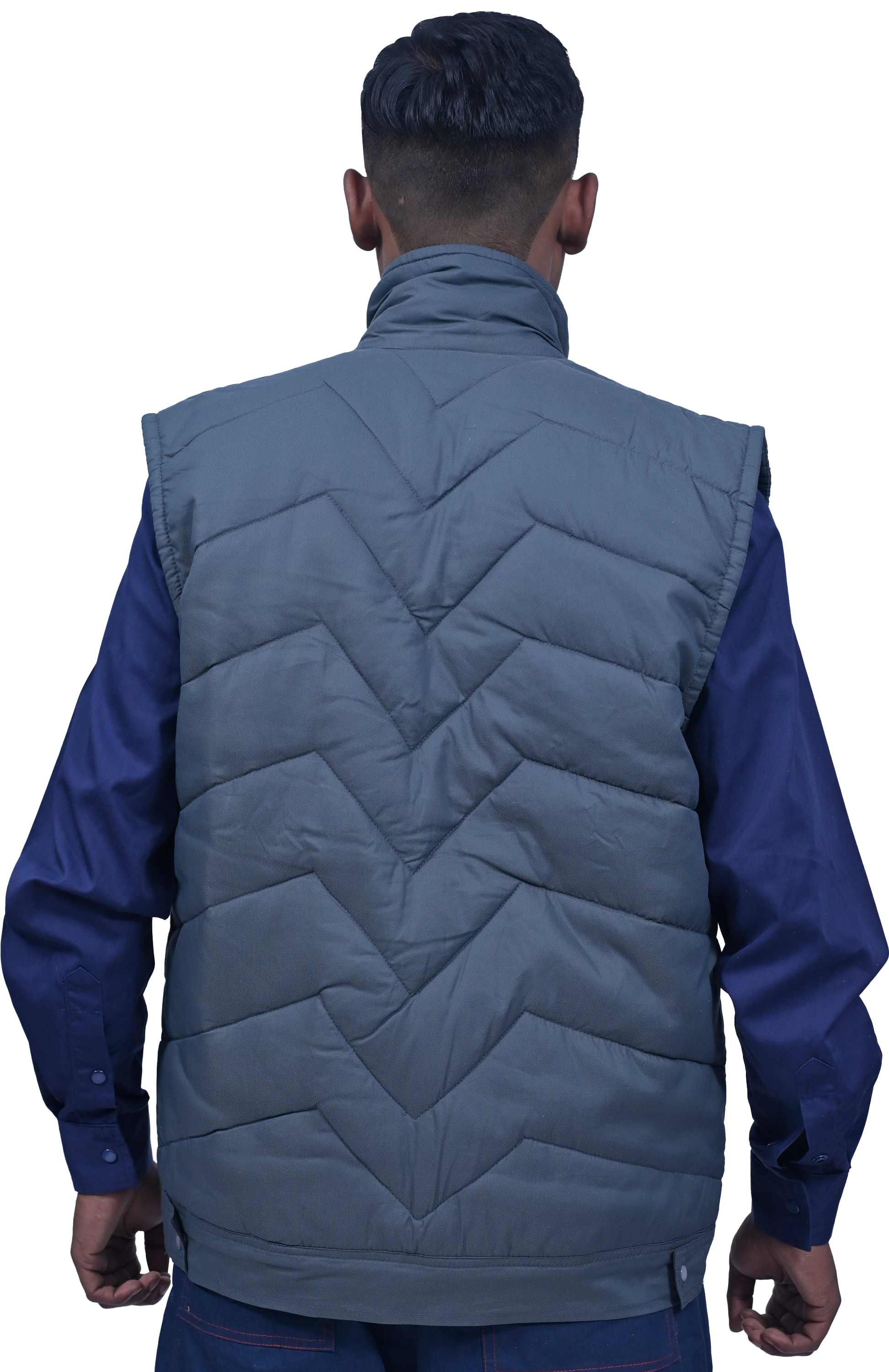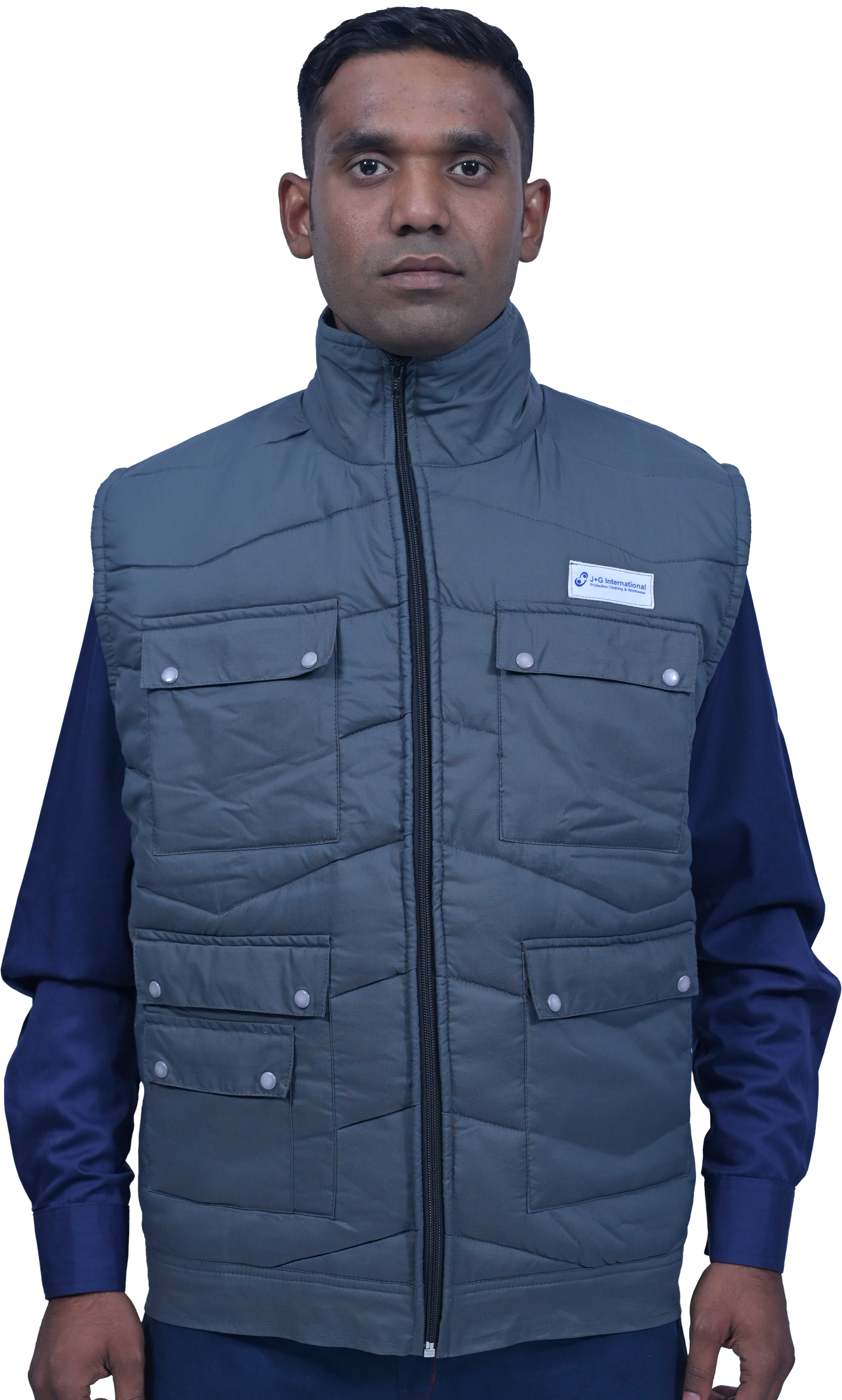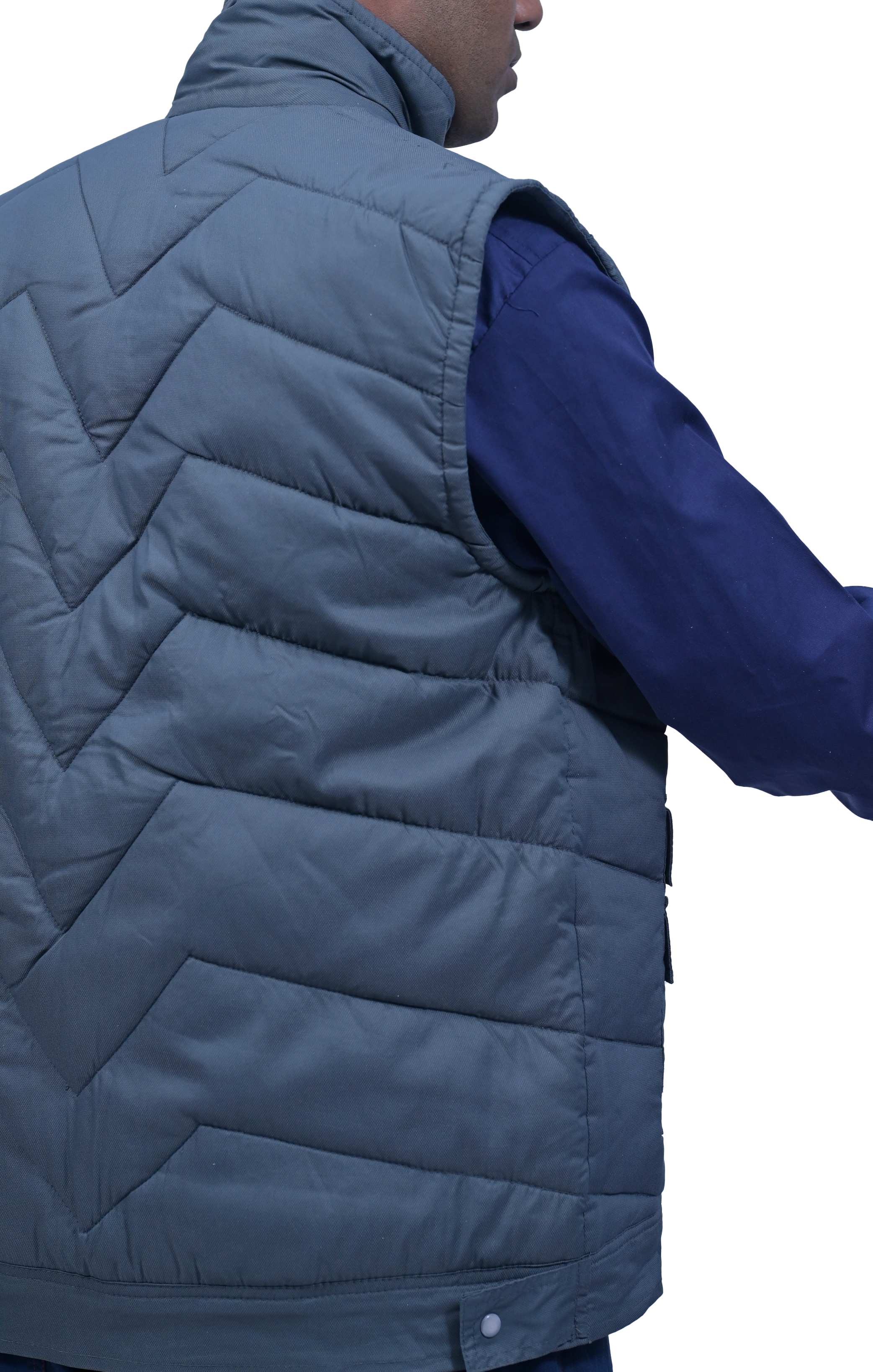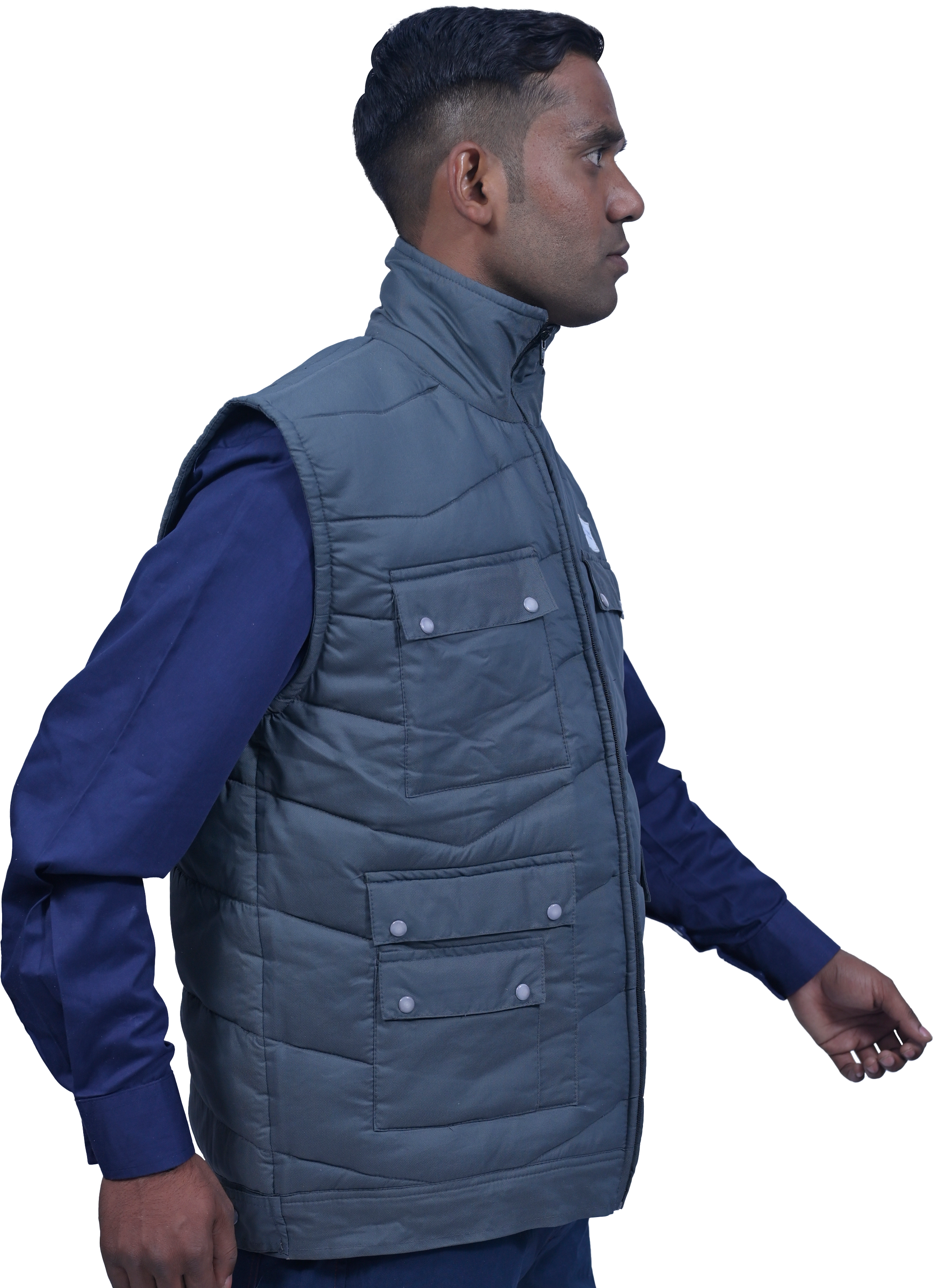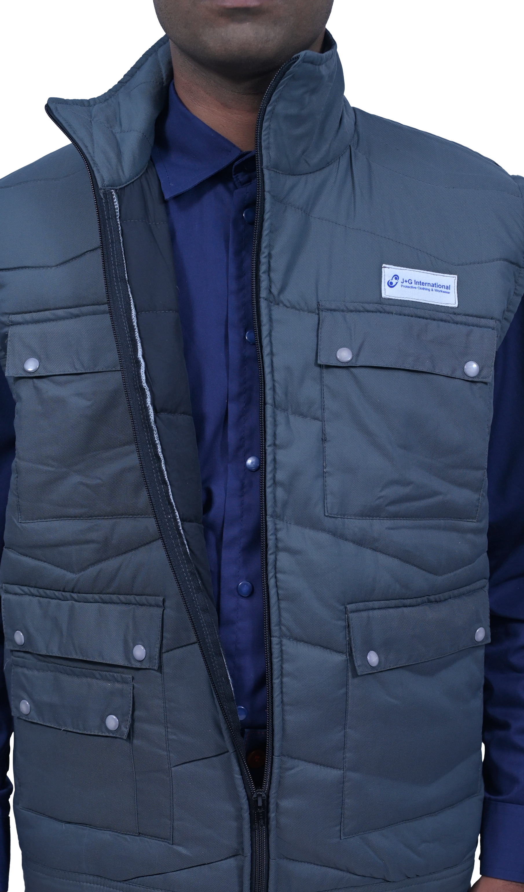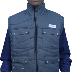 This Sleeveless Jacket comes with lining. It is made in cotton or nylon and has four front pockets with flaps. There is a long front zip for closure and it has a high neck. Reflective Bands can be added along with the company logo. It has a thick filler for extra warmth and is light weight.