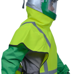 This High visibility cape for Nova helmet attaches directly to the helmet using strong press studs. This allows easy removal by the operator but will not come off accidentally. It is most suitable for working in blast rooms which have low visibility.  It is made of nylon fabric. There are reflective strips on the front and back on the shoulder and waist. The cape has a black piping to increase wear-tear resistance. It also forms a tight seal to prevent dust from entering the respirator.