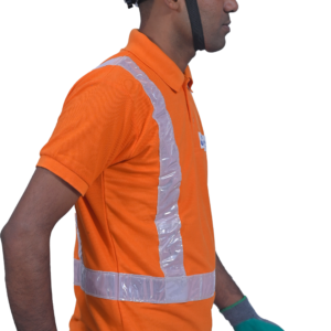 This Hi-Visibility Polo T-shirt integrates comfort of cotton & quick drying properties of polyester to keep you cool. It has segmented reflective tape to enhance visibility. The reflective tape is stitched on both sides from shoulder till waist and then there is a single strip around the waist. The front neck closing is with three buttons and it has a polo collar. It can be Customized in varied colors & sizes with company Logo.