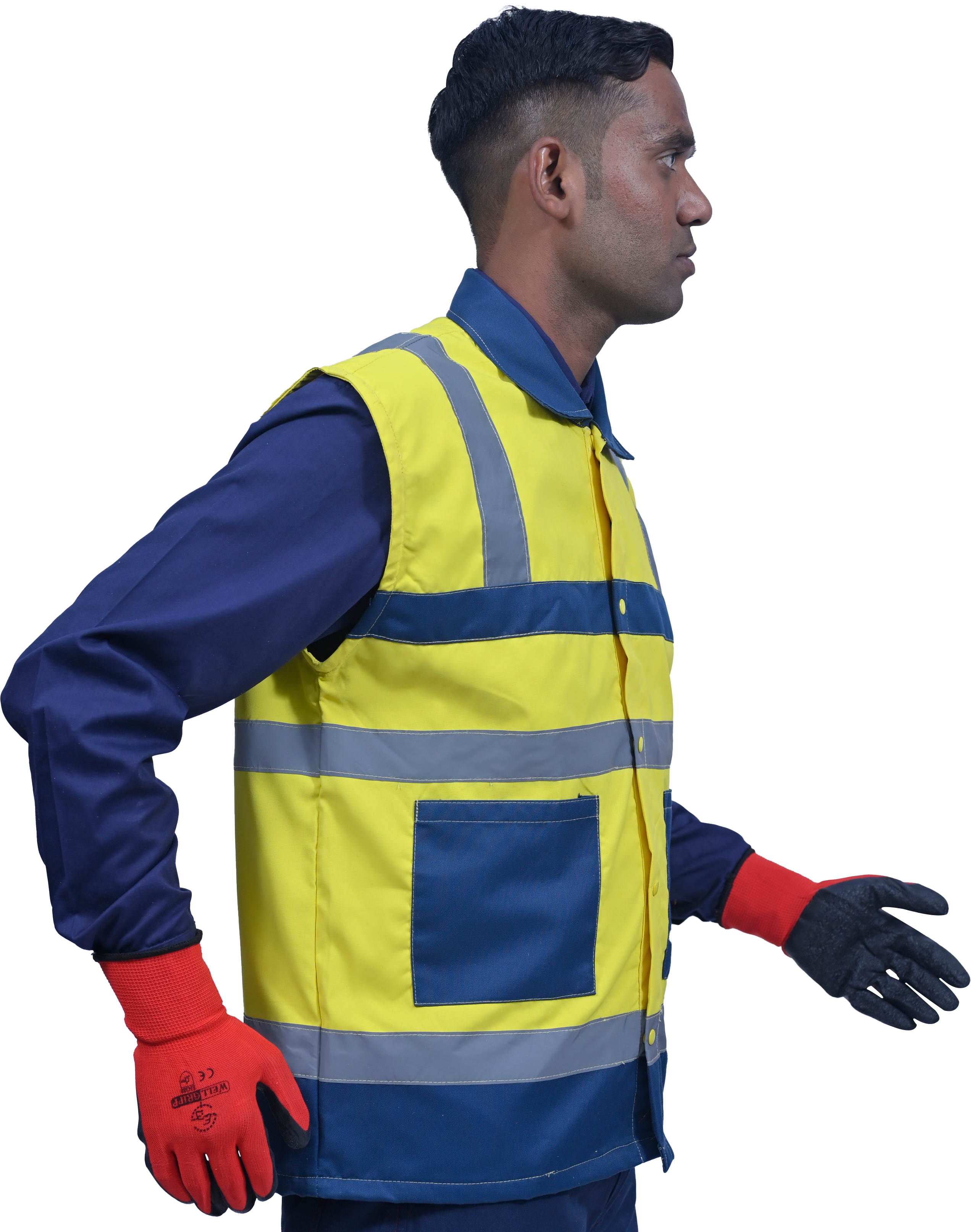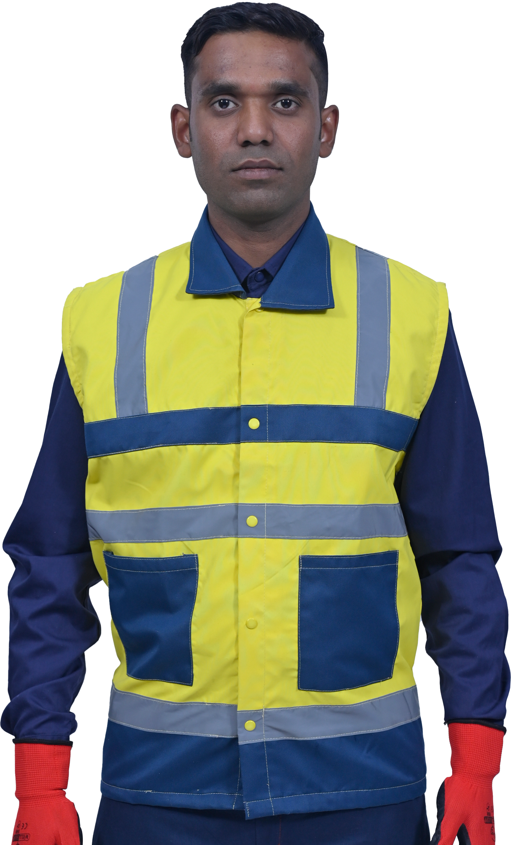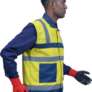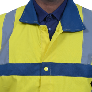 The vest is made of polyester-cotton fabric in high visibility reflective material. It comes in Dual color for added style and visibility It is durable, lightweight, breathable and machine washable. The two-inch wide reflective strip covers the shoulders, chest and waist both in the front and back which provides 360° protection during work or outdoor activities under any lighting conditions. The two front pockets give great convenience to the operator. They are designed to aid in easy categorization and easy access for various tools and equipments. It has button closure in full front along with shirt collars. The company logo can be printed on top of the front left pocket.