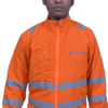 This trendy jacket is made using Hi-vis polyester nylon on top and polyester cotton waist below.  It has a polo shirt collar in polyester cotton. The jacket is full-sleeved and has elastic on the cuffs which gives a good grip and fit. It is dual colored and can be made in a wide choice of colors. The front closure is with buttons with a flap on top. It is very versatile and can be worn in medium cold weather. The company logo can be printed on the left side near the chest area. There are two pockets on top near the chest on both sides with a flap closure so that the tools don’t fall while working. A reflective strip goes around the waist and arms which further enhances visibility.
