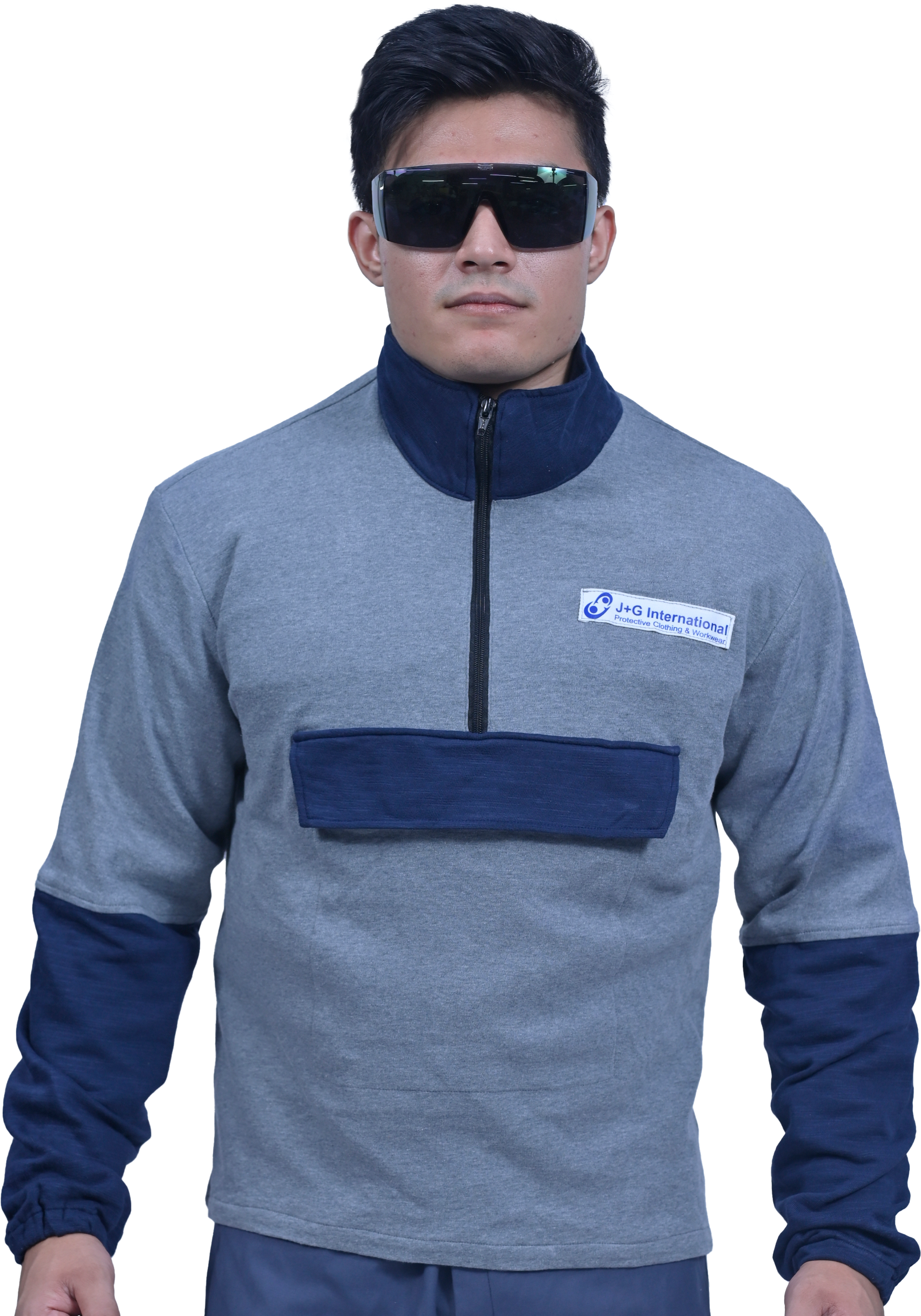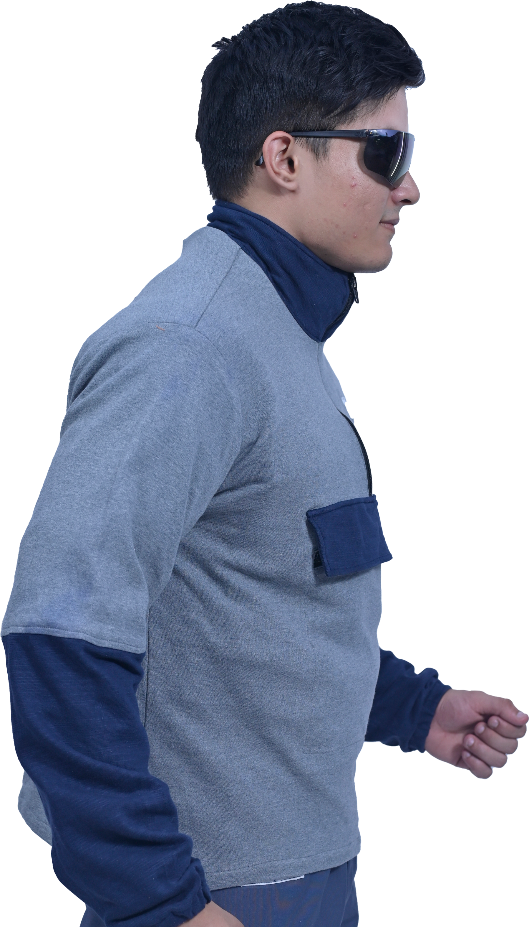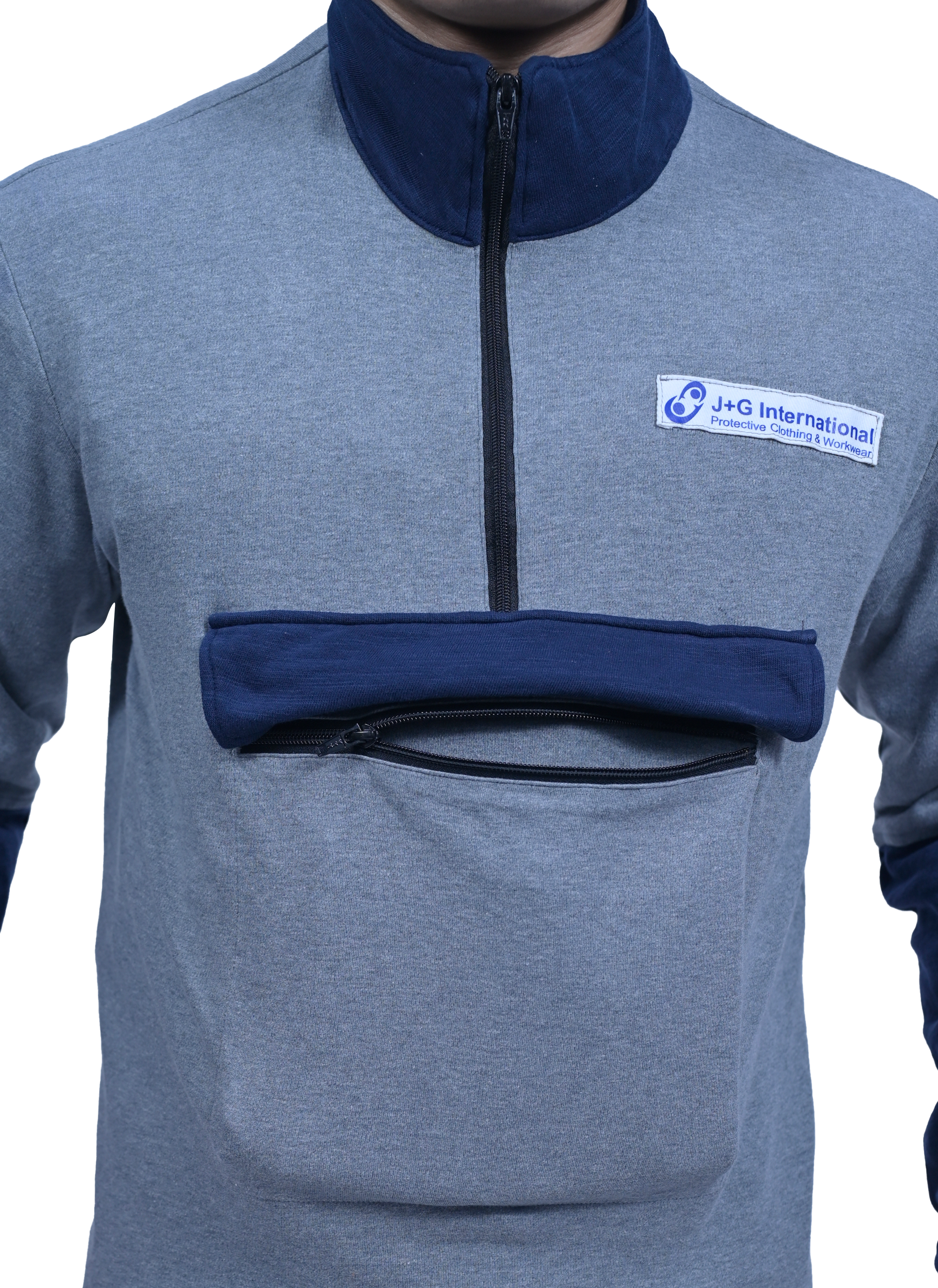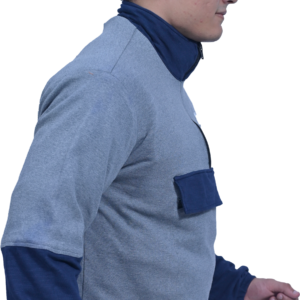 This sweatshirt in knitted fabric is available in a choice of different dual colors. It has a round neck and elastic on the wrist. There is a spacious pocket in front with a flap, reflective band can be added to it. The company logo can be printed on the top left side.