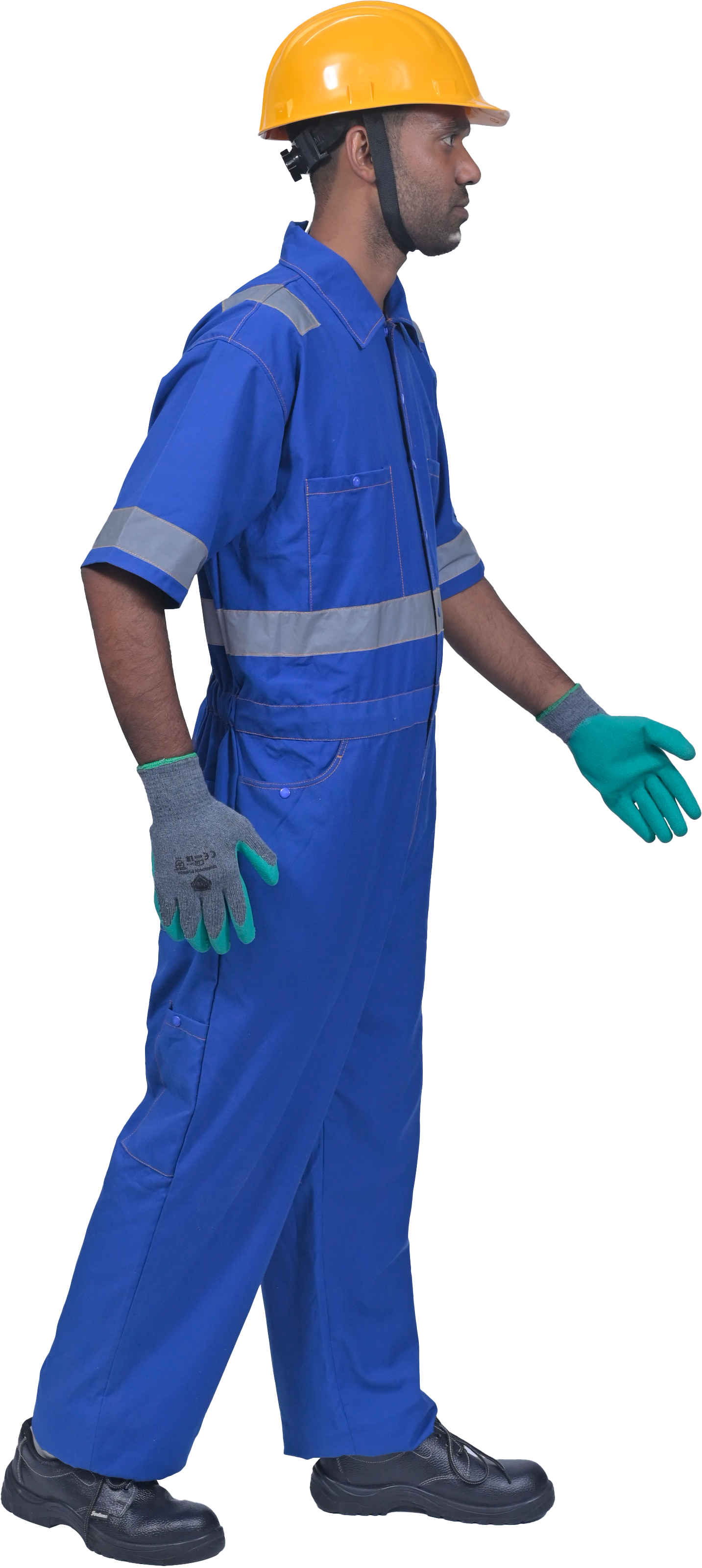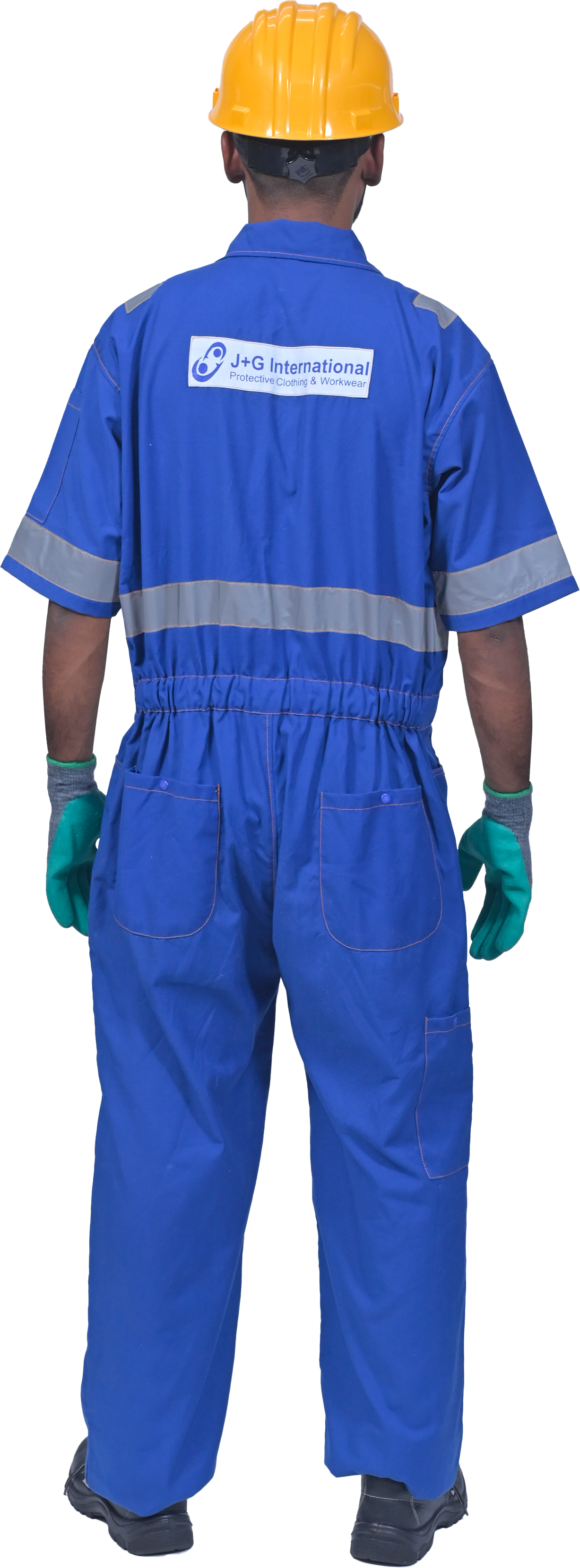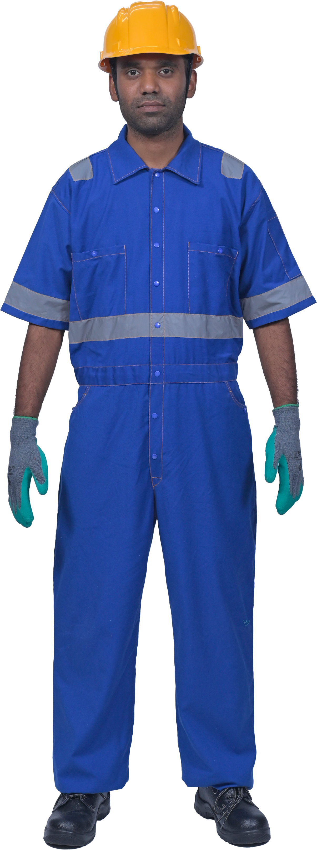 This half sleeve overall comes in single colour. It has a contrast stitching for added style. The half sleeves are a good choice for warm weather and to increase arm mobility. It can be made in polyester/cotton or 100% cotton fabric. Reflective tape is stitched on it in various patterns to increase visibility. It can be made in various colours.